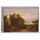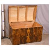Wooden arch top trunk with faux finish; 55-5218 - (missing lock; chip on lip; finish as-is) - 36.5x22x24