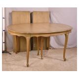 5 piece rattan dining/game table set; 737-2269 - round table 42x42x29 - 4 chairs with casters 24.5x26x31 - (finish and fabric as-is)