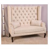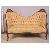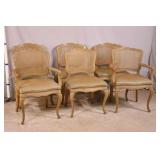 Pair of French style fireside chair with tufted backs; 55-5220 - yellow frames - cane panels in back - (finish as-is; small hole in cane) - 33x26x34