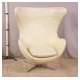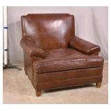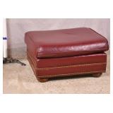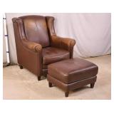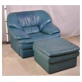 Modern style teal green leather chair and ottoman; 737-2247 - (some discoloration and wear in leather; smoke smell) - 44x40x33 chair; 27x27x16.5 ottoman