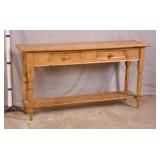 Distressed pine 2 tier sofa table with 2 drawers; 55-5259 - turned legs - 48x15x30.5