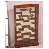 Unusual curio cabinet with beveled glass; 74-5224 - slide-out board - (missing shelves) - 26.5x17.5x77