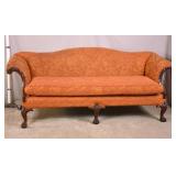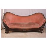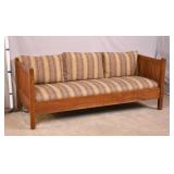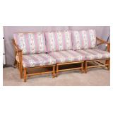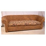 Large twisted rope sofa with cigar upholstery; 737-2268 - (finish as-is; large hole in back) - 96x40x29.5