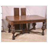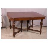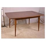 Danish modern style walnut draw leaf dining table; 55-5314 - (finish as-is; scratch in leaf) - 33.5x51x28.5; 21.5" leaves