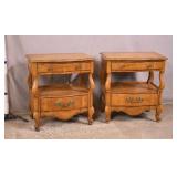 Pair of Baronet 2 drawer end tables with dark finish; 55-5184 - (small chip on front edge of top; finish as-is) - 24x18x24