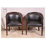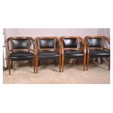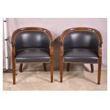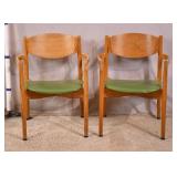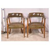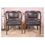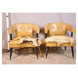Pair of yellow mid-century curved back chairs; 55-4951 - (vinyl as-is) - 27x26x27.5