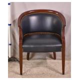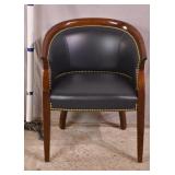 High back accent chair with faux burl finish; 737-2260 - unique carved legs - (stain on seat; finish as-is) - 20x23x46.5