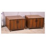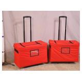 Pair of portable travel gear bags on rollers; 14-627 - telescoping handle - zippered tops - clear label window - great for trade shows, antique shows - 24x14x17.5