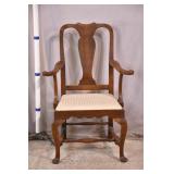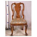 Walnut Bank of England style chair; 55-5336 - carved seat - stretcher base - (finish as-is) - 23.5x23.5x31.5