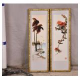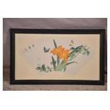 Small framed Oriental style print; 697-185 - flowers and butterfly - 20x12