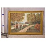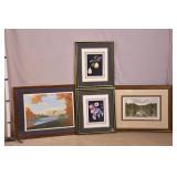 Group of 4 framed prints; 44-lot - Lincoln Memorial, pair of fruit scenes, garden scene - (scuffs on frames)