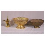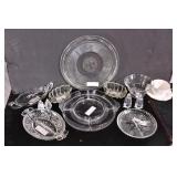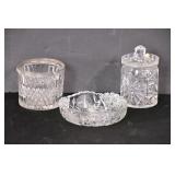 Group of 3 crystal pieces; 48-481 - divided dish 8x8x2 - candy jar with lid 5x5x8 - ice bucket with metal rim (missing handle) 6x6x5