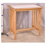 Pine side table with turned legs; 55-5256 - stretcher base - (finish as-is) - 24x24x24
