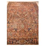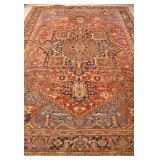 Large hand knotted vintage Persian Heriz rug; 55-5274 - (wear on rug and fringe; dirty) - 9.2x12.4