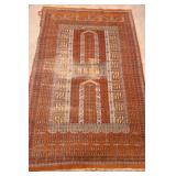 Hand knotted vintage Bokhara rug; 55-5293 - burnt orange color - (wear in rug and fringe) - 3.11x6.5