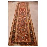 Hand knotted vintage Persian rug; 737-2243 - (wear in rug and edges) - 3.6x12.6
