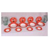 Set of Coca-Cola plates, bowls and pitchers; 908-191 - 4 four piece places settings and 2 pitchers