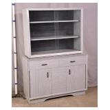 Light gray formica 2 part china cabinet with sliding glass doors; 55-5121 - adjustable shelves - (missing support piece under top) - base could be used without top as a server - (finish as-is) - 47.5x15.5x67.5