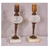 Pair of small decorative glass ball lamps with marble bases; 253-207 - 3.5x3.5x11