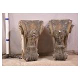Pair of concrete architectural pieces; 55-5332 - woman face - (various chips) - 15x17x23