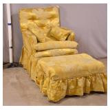 Small upholstered boudoir chair with ottoman; 737-2264 - (stains on fabric) - 22x26.5x31 chair; 25.5x17.5x14 ottoman