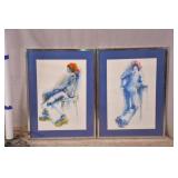 Pair of framed prints of women by Elizabeth Palmer; 737-2174 - (frames as-is) - 16.5x23