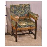 Open arm chair with turned legs and stretcher base; 55-5327 - (fabric as-is) - 26.5x26x36