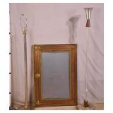 Group of 2 metal floor lamps and metal picture frame; 55-5346,5200,5354 - (frame is missing some flower pieces)