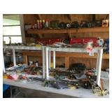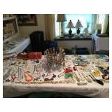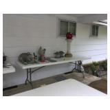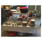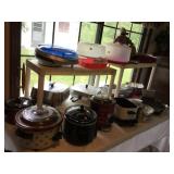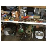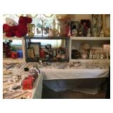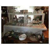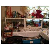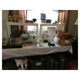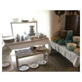 Furniture: lots of farm house furniture Mahogany furniture, painted furniture As Is Furniture to paint Office furniture Sewing machine in cabinet Fine jewelry & lots of costume jewelry Garage of tools & supplies Cement yard art, flower pots, patio furniture Handmade older quilts & quilt tops Canned food, spices Canning supplies Cookware galore Lots of glassware Pyrex, baking, kitchen utensils Crock pot collection Books Pampered Chef, Tupperware Christmas Tread meal Stained glass hanging lamps Linens-comforters,pillows,towels,napkins Clothes, shoes Garage of treasures