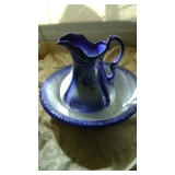 monson water pitcher and basin white and deep blue