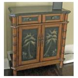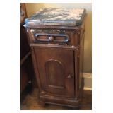 WY1026: Antique Distressed Marble Top End Table / Cabinet Local Pickup