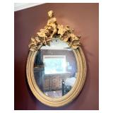 WY1008: Antique Gold Fuild Round Mirror 30" W X 44" T Local Pickup