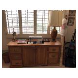 Viking Husqvarna model 1200 in great condition in a custom made cabinet with lift for the machine and drawers for storage