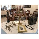 Several nice floor and table lamps, to include Medieval style pair of lamps with candles