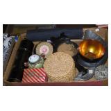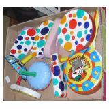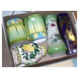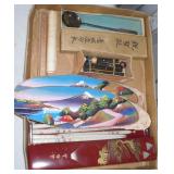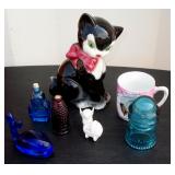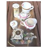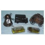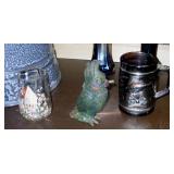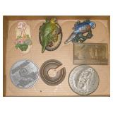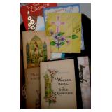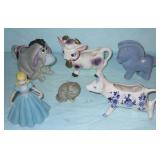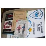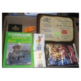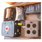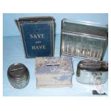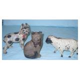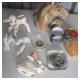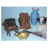 Art glass, milk bottles, linens, sewing notions, advertising, home decor'. Over 30 cast iron doorstops including Hubley-dogs, horses, baskets, animals, others, bookends, 50 + banks, bottle openers, animals & other cast iron. Primitives. Large lots of ephemera incl Post cards, greeting, old advertising +. Fine and costume jewelry. Fancy ladies hats & aprons, Mid Cent Mod typewriter, air purifier & Fan MIB, great school jacket from Japan, Mid Cent Mod Kid's Chairs, Printer tray, delightful 50's baby & kids clothes inc. Cowboy bathing suit, 1950's ladies 2 piece swim suits, Weller Custard set, WWII Beco Mess Kit, Scout Mess Kits & Scrap Book, Black American Mammy key holder, Figural Diecut WWII GI desk calendar, Lrg. Agate Coffee Pot, Antique Hand Hammered brass bucket, Carnival Glass Fenton Vases, Antique Ukelin, 1920 Sugar Easter Egg Diorama, Flannel Quilt Christmas stocking, antique open salt collection. Antique books, 1945 Vanity Set, 100's small figurines, art pottery & china, 70's & 80's rock albums, large lot of modern collector dolls, Pyrex bowls. Items still coming in.