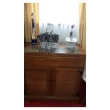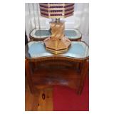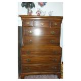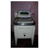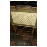 Retro lamps- end tables and lamp pole. China cabinet, table/chairs, Ethan Allen server and hutch, Royal wheat Valmont china, Fire King Tulip bowls, Vintage kitchenware, Tupperware, Retro glassware, barware, Knick knacks, pictures. 1970 Bruce Springsteen cardboard poster. 2- credenzas, shadow box.BR 2- chests, 2- dressers, lingerie chest, bed frame, book shelves, books. Bibles, desk, foot locker, file cabinets, accent tables. Linens, costume jewelry, Singer sewing machine and notions, vintage rocker, utility cart, vintage holiday items. Maytag wringer washer, hand tools, golf clubs, tool bench, lawn mower, ladder. Wheel chair, walkers, bath seat, and much more.
