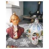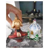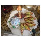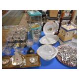 Linens,glass Christmas ornaments,china,bookcase,fireplace,lamps,Lennox