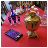 Cred Wanaue Vases, Staffordshire Cream Sugar & Milk, Ansley Tea Cups, Decanters, Crystal Pitcher, Brilliant Cut Items, Cut Glass Celery Dish, Bohemian Cobalt Blue Set,