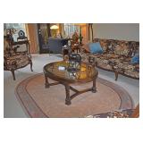 Rowe Mid C Leather & Wood Sofa, Carved Wood 1800 Chair with Ladies Carved at Edge of Arms, 1800’s Wood Rocker, Chest, Side Tables, China, Buffet, Ethan Allen Dining Room Set, Ornate Chinese Octagon Hall Table, with Marble Top, Ornate Metal with Marble Top Tables, Tiered Tables, Floral Asian Motif Sofa & Chair, Metal Shelf, Glass Top & Wood Coffee Table, Drum Table, Round Side Table, Two White Contemporary Sofas, Two Side Chairs, Baker Octagon Table (2), Asian & Chinese Mahogany Tables, Vintage Mahogany Tables with Shells Design as Corner and Cabriole Legs, three Tiered Walnut or mahogany Pie table, Unique Duncan Phyfe style Vintage Two Tiered Mahogany Octagon Table, Oak Pedestal, Off White Sofas