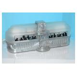 Crystal Di-Cobalt Blue with Woman in Art Ceco Style Costume in Silver, Artist Erte by Franklin Mint 1989, Bronze Art Nouveau Lady with Glass Vase Insert