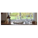 Blue Wedgewood Platters, Vases, Cream & Sugars, Guiena Hen Salt & Peppers, Lenox Leaf Dish, Glass Tiger, Glassware,