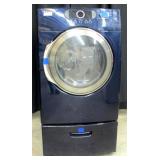 RECONDITIONED SCRATCH AND DENT DARK BLUE SAMSUNG NATURAL GAS DRYER WITH DIGITAL DISPLAY. ON A NICE MATCHING PEDESTAL BASE WITH STORAGE DRAWER. IN GREAT CONDITION OVERALL WITH COSMETIC SCRATCHES AND DENTS. MODEL #DV337AGL/XAA, SERIAL #348554BP600077W. MEASURES 27" WIDE v 28" DEEP x 52" TALL. PLEASE SEE PHOTOS FOR DETAIL FOR THESE SCRATCH AND DENT ITEMS THE SELLER STATES THAT ALL WASHERS, DRYERS AND DISHWASHERS HAVE HAD 3 LOADS RUN THROUGH THEM AND ALL FRIDGES AND FREEZERS HAVE BEEN RUN FOR AT LEAST 3 DAYS TO INSURE THEY ARE WORKING CORRECTLY; HOWEVER THEY ARE SOLD AS IS * HOW IS * WHERE IS