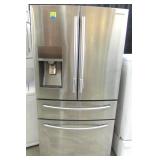 RECONDITIONED SCRATCH AND DENT STAINLESS STEEL SAMSUNG FRENCH DOOR REFRIGERATOR WITH IN-DOOR ICE AND WATER, MIDDLE FLEX ZONE DRAWER AND A LARGE DEEP FREEZER ON THE BOTTOM. IN VERY NICE CONDITION OVERALL WITH COSMETIC SCRATCHES AND DENTS. MODEL #RF24FSEDBSR/AA, SERIAL #W605043BD50117Y. MEASURES 35" WIDE x 27" DEEP x 70" TALL. PLEASE SEE PHOTOS FOR DETAIL FOR THESE SCRATCH AND DENT ITEMS THE SELLER STATES THAT ALL WASHERS, DRYERS AND DISHWASHERS HAVE HAD 3 LOADS RUN THROUGH THEM AND ALL FRIDGES AND FREEZERS HAVE BEEN RUN FOR AT LEAST 3 DAYS TO INSURE THEY ARE WORKING CORRECTLY; HOWEVER THEY ARE SOLD AS IS * HOW IS * WHERE IS