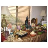 Very nice rattan furniture pieces; dining table with four chairs; Bookcases; many books on Feng Shui, Self help, Meditation; Crate and Barrel four piece queen bedroom set; 1998 Lexus; much patio furniture; storage cabinets; four dining room chairs; very nice women clothing S - M and very nice shoes 6 1/2; Art pieces; area rug; Bose system; five piece wood bedroom set; screen divider; much HH (household) items and decor throughout. |