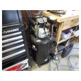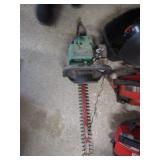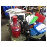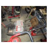 Mower/Tools: New Holland LS45 hydro lawn tractor w/deck; lawn trailer; nice Yard Machines rear tine tiller; Troybilt 3250W & Stormcat 700W generators; snow blower; 2k psi pressure washer; Crafts. radial arm & miter saws; Ryobi table saw; bench grinder; belt/disc sander; bench drill press; vise; chainsaws; hedge & weed trimmers; clamps; mower jack; floor jack; shop table; 21 gal. 125 psi air compressor; (3) small air compressors; like new Husky 11 drawer rolling tool chest; misc. power & hand tools; propane & kero heaters; shop vac; Werner step ladders; combo ladder; parts washer; lawn & garden tools; ext. cords; lumber; paint; workbenches.
