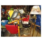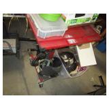 Camper/Misc.: Pop-up camper w/new canvas; large vintage carnival gaming wheel; trolling motor; Eagle 500c fish finder; Fender Squier & Memphis elec. guitars; Peavey Bandit 75 amp; gas grill; fire pit; turkey cookers; clam steamers; outdoor storage shed; patio sets; misc. small appliances; Crosman air rifle; 10’x10’ tent; Elvis albums & Beam bottle; invalid scooter; Mike’s Hard Lemonade sign; car speaker; electronics; garden décor; many misc. items.