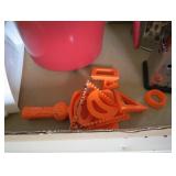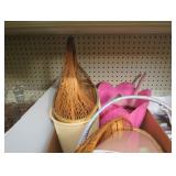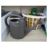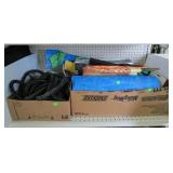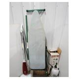Ironing board, boot brush, garden sprayer