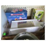 Bathroom scales, hair clipper set, umbrella