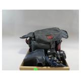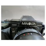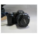 Minolta maxxum 7000 camera with Tokina AF 70-210mm lens, flash, camera bag
