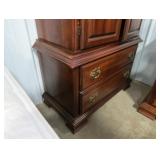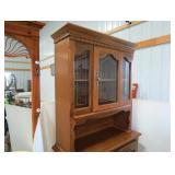 Two-piece white wood china cabinet